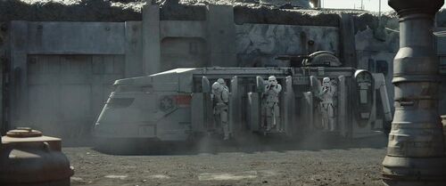 这是一辆帝国运兵艇(Imperial Troop Transport),简称ITT。这种载具最早是玩具公司肯纳在1979年原创的,即第一款不基于任何电影元素的《星球大战》玩具。同年10月出版的漫威古早漫《星球大战》第31集《重返塔图因》(Return to Tatooine)是第一本与ITT有关的《星球大战》图书。2014年,动画连续剧《义军崛起》把ITT引入了《星球大战》正史。