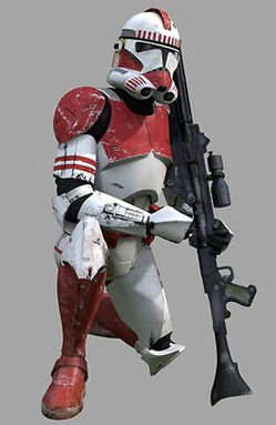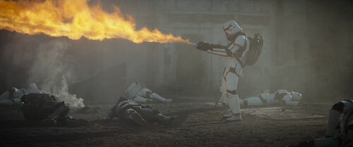 这是一名帝国焚化冲锋队员(incinerator stormtrooper),最早出自2008年的电子游戏《原力释放》(The Force Unleashed)。本集是这一兵种首次在正史里出现。