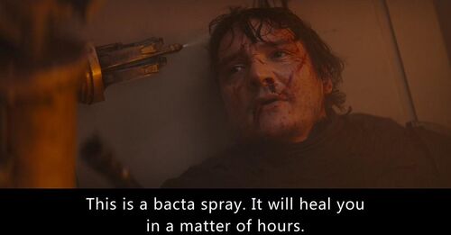 虽然巴克塔喷剂直到2003年才在《星球大战》网游《星系》(Galaxies)里出现,但“巴克塔”是《星球大战》作品里最常见的医疗物质,最早出自《帝国反击战》。巴克塔由弗拉蒂克斯人(Vratix)发明,能迅速促进伤口附近的细胞再生,几乎可以治疗一切伤口。