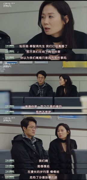 很多人觉得离婚的夫妇之间是长时间的争吵、谩骂、互相厌弃,然后以老死不相往来作为结局。但是实际上,正如徐组长坐在医院里那段冷静的陈述,大多数人都是在漫长的时间中满满的走向分道扬镳,长时间的忍耐和一瞬间的失望才是众多感情的高度概括。