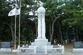 由于这里海岸不远,李明赫便命令船长打开船舱前门,但不幸的是这里的水下地面非常滑脚,加上受台风影响,船只周围的海浪达到了5-6米高,即使是习惯游泳的人,也无法在这种环境下移动。因此第一批下船的人瞬间就被海浪冲走,消失在大海中。李明熙派出七名士兵携带绳索,试图抵达海岸,但也都被海浪卷走。最后还是两名熟悉水性的船员带着四条绳索抵达海岸,第1中队和第2中队才凭借这些绳索在海滩上着陆。