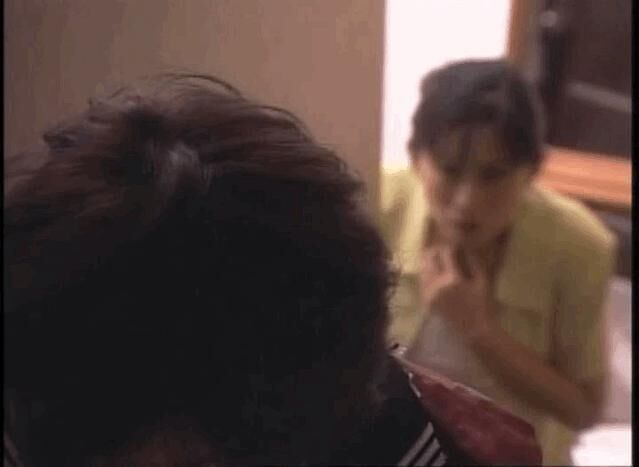 妈妈循着血迹跟上楼梯,骇然看见女儿满身是血踉踉跄跄地朝上走着。"柑菜?"她怯生生地唤了一声女儿的名字。此为铺垫第三步,即把母女引来闭塞阴暗的楼梯处,上下级的结构也自带压迫感。然后导演清水崇还来了个少女抬眼看向镜头的骚操作。