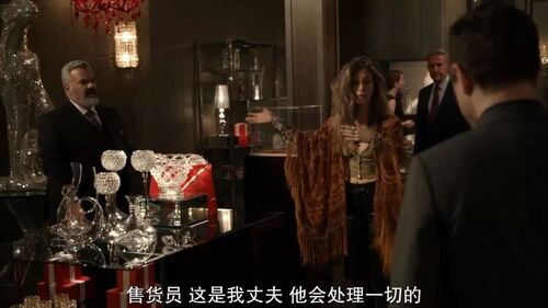 丽兹在奢侈品店消费,不小心撞倒了桌面上的玻璃杯,而这时刚好是皮特推门而入的时间。