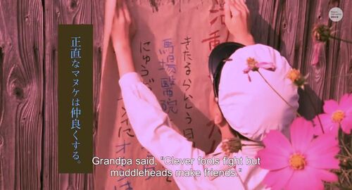 这也就是为何大林宣彦在影片前半场不断通过文本和视觉刺激卖力提醒着观众“这是一部电影”的原因所在。他不止想跟我们诠释战争的伤害、让我们相信和平的童话,还想让我们共同笃信电影的力量——如果下一代仍有幸免于战争的伤害,我们仍可以用电影的力量传递和平。