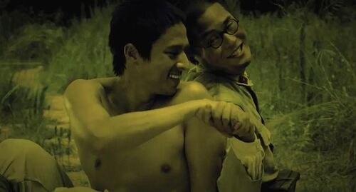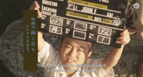 如同《花筐》中男主“俊彦”的名字和结尾出现的导演椅,大林宣彦在《海边电影院》里也同样埋藏了关于他个人的线索:男主之一毱男回忆起童年的自己,转动着活动写真机、在胶片上画漫画放映、被外国导演称作内心有着映画魂,想必这些都有着大林宣彦的童年色彩。