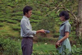 豆瓣介绍里,将其落脚于一个揪心的爱情故事,未免过于仓促简单。在我看来,越过爱情之后,可以落在李心洁和阿部宽的自我救赎上,爱情不过是恰好发生了,而且在那种灵魂承受巨大考验的时刻里,爱情也仿佛能趁虚而入。姐姐李心洁,与同胞妹妹同处一营,白日目睹日军对妹妹的暴行,夜晚听妹妹对日本园艺的设想。人生的苦难与崇高的艺术理想,像两种浓烈绵绸的红与蓝,当空相向泼出,两者不相溶,却紧紧相依。最终,姐姐得以逃离,妹妹却命丧矿井之下,这使得李心洁一直活在对妹妹深深的内疚中,这种罪恶感如鬼魂般日日夜夜纠缠着李心洁,直到,她遇见日本皇家园艺师阿部宽。虽然影片将阿部宽是否为日本间谍设置为了悬念,答案为否也过于明显,但影片但处理还是很值得玩味。一方面阿部宽用黄金赎买俘虏,另一方面,又强调日本人对国家的忠诚,再加上角色本身对园艺及刺青、折纸、浮世绘等艺术的执着,使得角色的复杂性陡然增加。李心洁向阿部宽学习园艺,用来建造出妹妹脑中的花园,以实现自我救赎;同时,阿部宽也在教授的同时,也完成自己深陷于国家战争罪恶下的自我救赎。