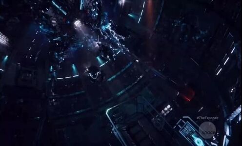 Holden一行人找到了坐标小行星上停着的飞船,正是阿努比斯号,但奇怪的是飞船所有舱门都打开着,气体全部排出,却没有被强力攻入的迹象——原来在阿努比斯号带着原分子病毒前往爱神星的路上,原分子病毒已经苏醒并侵染了飞船核反应堆以及飞船成员。