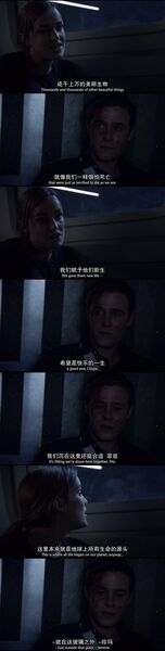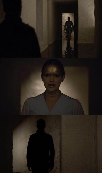 当Simmons声泪俱下地告诉他他们在现实世界的情感时,他又毫不留情地对着她的膝盖开了一枪:
