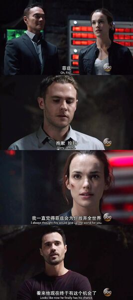 总的来说这一季的Fitz因为自己大脑的损伤变得很自闭,害怕面对Simmons,所以一直很别扭,不过也偶有小惊喜: