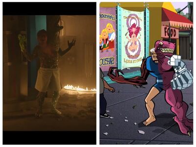 末日巡逻队和X战警相似,主角大都是些另类的怪人,其中,DP里的机甲人的作用相当于X战警的金刚狼,首席相当于X教授。不过,两者的风格差别还是很大的,末日巡逻队更突出奇幻或超自然色彩,也更加关注个人层面的挣扎。这次的《末日巡逻队》剧集更加强调怪诞要素。为此,反派Mr. Nobody(谁都不是先生)打破了“第四堵墙”,兼职了旁白和吐槽的设定;引入了蟑螂先知以西结……这些都是漫画里没有的。并且,可能也是为了迎合性取向的政治正确立场,底片人在剧集里被塑造成了同性恋,并用了很多篇幅来表现他的内心挣扎。