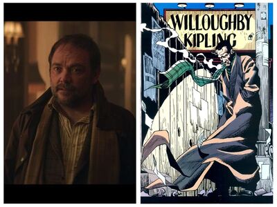 威洛比·吉卜林,和约翰·康斯坦丁一样都是英国魔法师。据说之所以开创这个角色,是因为约翰·康斯坦丁的作者拒绝末日巡逻队漫画使用约翰·康斯坦丁。于是就有了威洛比·吉卜林,特点是嗜烟好酒,邋遢,缺德。在漫画中,他曾经帮助末日巡逻队打败了“不成文之书教徒”(Cult of the Unwritten Book)和“制烛者”(Candlemaker)。在剧集中,他第一次出现就是为了打败“不成文之书教徒”,目前不清楚会不会在接下来的故事中出现制烛者。