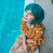 Milla出场时一头铂金色长发、优等生裙长的学生制服,之后被Moses剃了一头杂草般的短发、又直接变成了小光头,影片后半段,随着叙事距离逐步缩近、镜头愈发深入这个少女脆弱崩坏的内心世界,她换上了一头海草般的蓝绿色假发、穿上了母亲为她参加舞会买的丝绸长裙。生命越燃烧到末尾,反而迸发出越灿烂、越毫无保留的火花。派对那场戏,柔和绚烂的灯球交替变换着洒落在Milla的脸庞上,和陌生人贴面吻的瞬间,一朵烟花的光影在Milla侧脸绽放,浪漫的环境光好像神明庇佑降临人间。