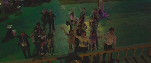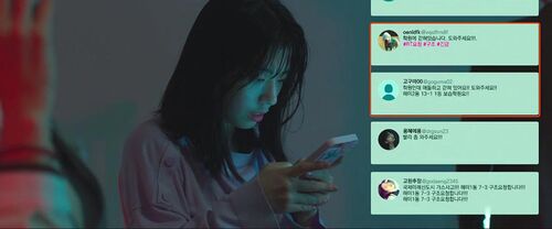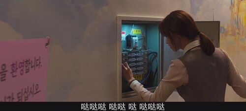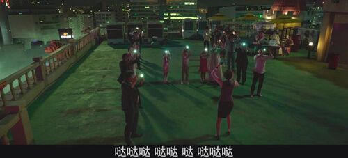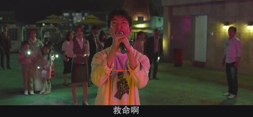 被困在酒店时,妹妹用手机在sns发求助信息,与此同时屏幕上也滚动了许多来自网友的求救,其中就有被困补习学院学生们的求救信息,前后呼应。