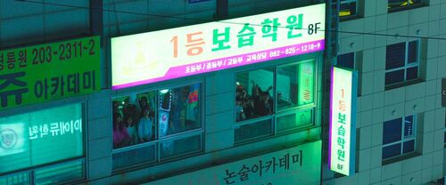 根据剧情推测,CCTV拍到气罐车时是晚上11点,有毒气体爆发是在晚上11点10分,从男主一家人在酒店避难逃生到坐上直升飞机离开,然后男女主再逃生到补习学院处,预测大概也要凌晨了,到这个时间为止都依然在学习的学生们,侧面反映了韩国社会的教育现状。