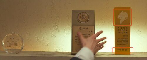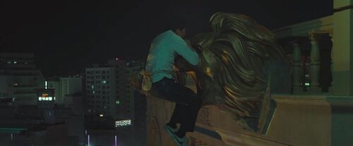 云之庭院酒店大楼的名字是lion building,因此不仅在顾客赞赏的奖杯上有狮子的图案,后面勇男爬到天台的最后一抓也是抓在了狮子头上。