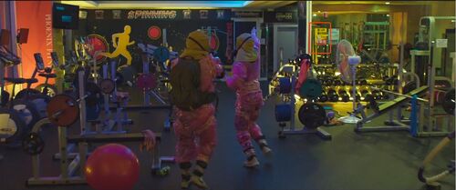 健身房随处可见的这些激励海报,也是在侧面激励着男女主,希望他们能够顺利实现逃生。