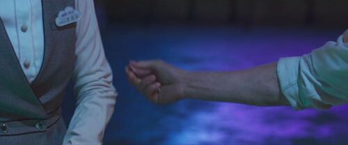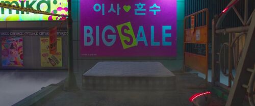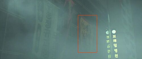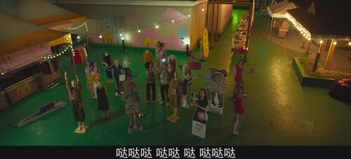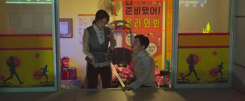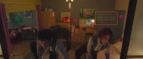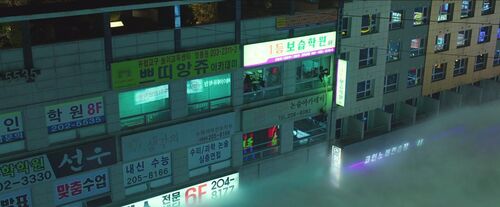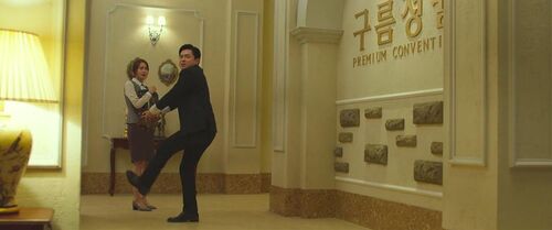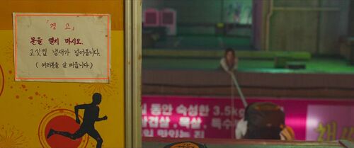 勇男和义珠重逢后在楼道相谈,在这个空间里有许多带有文字的装饰,不管是易拉宝还是指示牌,都能看清楚字样。唯有显示为“薄荷大厅”的纸张模糊不清。在韩国,薄荷的花语是真心,模糊不清代表着并非真心。在这个楼道里,勇男对义珠没有说过一句真心话。