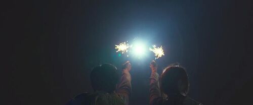 最后两人能被直升机救援,全靠这个最大功臣烟花。这个烟花是最开始勇男从餐桌上拿起来装进背包的,镜头有给到1秒钟的特写: