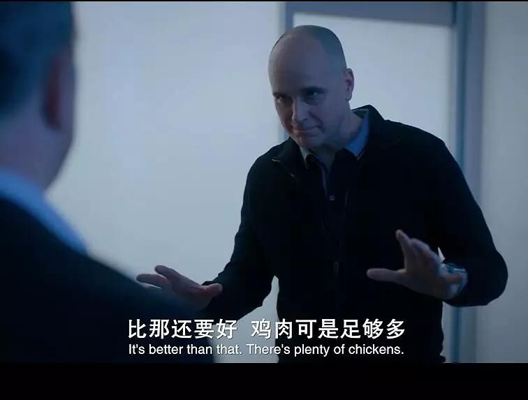 Bill部分,bill通过送餐员得知阿肯色州鸡肉指数编制人的底细,知道这个人从不认真去调研养鸡场真实的数据,只是在家里打打电话让养鸡场自己报数据,养鸡场么当然希望鸡肉价格越高越好咯,肯定说我们现在鸡很少啊之类的.......千算万算就是没算到这家伙会突然死亡(不要太宅?)