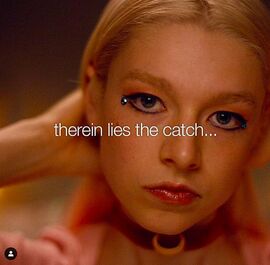 Hunter Schafer在剧中饰演一位变性人,人设非常有趣且有代表性——无论是穿衣风格还是染成人鱼色的头发,以及她房间里时不时传出的日漫背景音,都显示她是个日本动漫文化的西方青少年粉丝,当拒绝女一邀约时,她表示自己要在家看《魔法少女小圆》。事实上,这种迷恋日本文化的海外宅早成气候,并且“Weeaboo”的负面印象在逐渐削弱,想必一批东方中老年眼见童年乖宝宝回忆竟然演化为新生代眼中怪力乱神的亚文化符号时,难免会露出尴尬而不失骄傲的微笑。