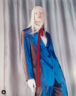 然而比剧中角色更吸引人的当属本色出演的Hunter Schafer本人。她1999年出生于美国北卡罗来纳州罗利市,父亲是一名牧师。她今年20岁,是一名模特、演员、艺术家、LGBT权益活动家,同时也是一位变性女孩。在高中时,她曾抗议北卡罗来纳州公共设施隐私和安全法案,在当时也被称为“浴室法案”。作为模特,她合作过的品牌有Dior,Miu Miu,Rick Owens,Helmut Lang,Tommy Hilfiger,Maison Margiela,Vera Wang,Marc Jacobs,Versus Versace,Emilio Pucci,Ann Demeulemeester等一系列大牌。被《Teen Vogue》评为21岁以下21个新星之一。此次出演《亢奋》,她跟该剧创作者Sam Levinson合作,基于自己的真实感受和经历,使这个角色更加鲜活。