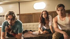 这位加拿大导演是拍摄地下电影起家的,之前的好几部作品有关僵尸、怪物等暴力血腥题材,而且是极低成本的独立影片。这部算是初次靠近主流口味的制作,或许可以解释这个惊悚恐怖题材里出现一些商业片里少见的大尺度场景。影片有着波兰斯基《水中刀》的故事轮廓,一开头就埋下岌岌可危的三角关系与情欲角力的伏线,却在剧情进行到一半的时候意外转入拷问人性的海上灾难类型。剧中多次引用李安《少年派的奇幻漂流》的情节,以及插入黑白默片的戏谑片段,使得这个爱伦坡的后现代改编海难故事增添几分黑色幽默色彩。除此之外,几位演员的喜剧演绎(愚蠢的台词和别扭的肢体动作)和较为简陋的布景又不断消解掉故事里过于沉重的扭曲人性,导演在喜剧与惊悚之间的平衡掌握得相当不俗。最后两个反转再次回到对人性阴暗面的核心探讨,而结局又回到道德标准的正轨上来。从这一点来看,这个故事并非完全是毫无价值的商业消遣娱乐片。