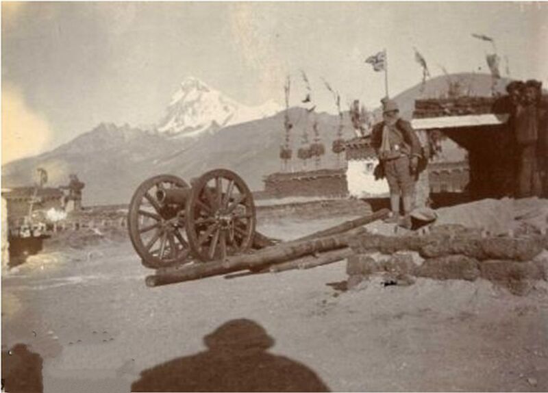 似乎有点跑题,但是还是要说一点,1890年和1893年,清政府与英国先后签订了《藏印条约》与《藏印续约》,承认锡金归英国保护,开放亚东为商埠,英国在亚东享有治外法权以及进口货物五年不纳税等特权。从此,英国侵略势力伸进了西藏。1895年开始亲政的十三世达赖十分痛恨英国侵藏。在沙俄的拉拢下,十三世达赖逐渐产生了联俄抗英的想法。英国十分顾虑沙俄势力插足,为了压服西藏,英国准备发动第二次侵略战争。几年之后,也就是在1903年英军入侵西藏的时候,开路的依然是马克沁,入侵初期,屠杀如此的残酷,以至于马克沁机枪分队的Arthur Hadow中卫后来忏悔道:“屠杀是如此的惨烈,以致于我放下了枪口。我希望我永远不用再朝着转过身去的人们开枪。”我之所以特意说这段出来,还有一个和萨拉加希战役差不多壮烈的故事,就是江孜保卫战。