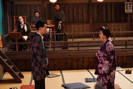 山冈秋声由永濑正敏饰演。山冈秋声是默片时代的传奇解说员,以其低沉浑厚的声线闻名。他擅长用韵律起伏的旁白勾勒银幕光影,并将俳句意境融入解说中,以风声掠过枯枝的意象渲染悲怆,用樱花飘落水面的隐喻传递寂寥。1923年,在电影《浪人剑》中,他以喉音模拟刀锋破空,用肢体震颤演绎武士决绝,让无声电影迸发出史诗般的震撼,被誉为用声音雕刻光影的造梦者。