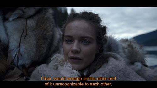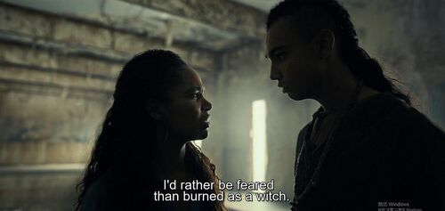 其实关于Maghra的身份,观众已经大概都知道了(我记得好像她女王姐姐诅咒过她),至于她为什么不早点向witchhunter/finder亮明身份,这个我没想明白,难道她获悉了大坝那边的权力斗争所以觉得现在是合适的时候了?还是她觉得这一次船搁浅了在劫难逃、响手链丢了一次怕再丢了,好像是后者。