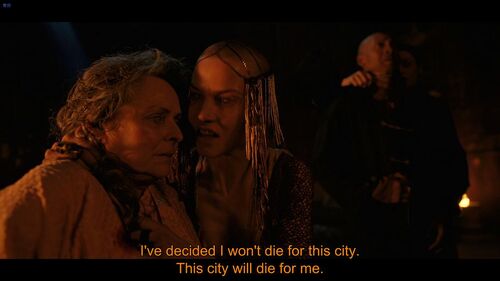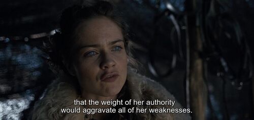 睿智的爹(传给女儿的东西,女儿一定不能丢)教的好女儿,Maghra面对亲闺女的任性,毫不客气的指出问题所在,让假儿子宣誓效忠;作为部落/家庭团队的精神引领,她太伟大了