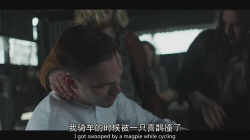 彩蛋:看到这段尼古拉斯霍尔特的角色受伤了却自称自己被喜鹊打了,我真心以为导演在这里剪掉了整整一场戏,比如Ned带着好兄弟教训想威胁自己的Alex什么的。后来看了演员访谈才知道这是真人真事,演员本人在拍摄期间真的在骑车的时候被喜鹊围攻然后撞到树上所以受伤了。估计是导演看演员受伤,就突发奇想把这个真事编进了电影。至于效果如何嘛,我个人觉得这个决定更加破坏了影片后半部分的连续性。呵呵。