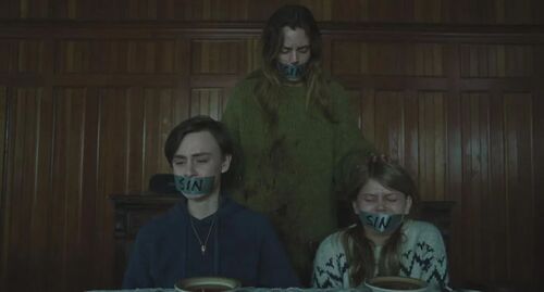 然而剧情很快在格蕾丝精神崩溃后迎来了第二次反转,两个孩子下到地下室,找到了藏起来的所有物品。原来一切都是两个熊孩子为了整格蕾丝的计划(当然打印出一份写有讣告的报纸,在雪地里制作很多大字痕迹,一个晚上清空房间内所有东西等行为也是蛮拼),但当两个孩子试图向格蕾丝揭晓真相的时候,却发现他们自己也深陷在他们所营造出的谎言之中,发电机无法启动,手机电池耗尽,他们无法联络外人,而格蕾丝精神出了异常,两个熊孩子自掘了坟墓。