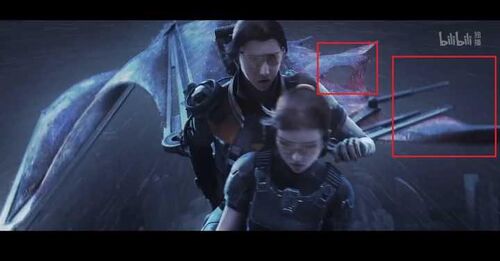 从1-2集可以看出,枪械对于噬极兽的作用跟挠痒的区别不大,猎荒的最高战力装备为重立体。结合人物对话和背景信息可以看出每次外出都大概率遭遇噬极兽的袭击。这里完全没有任何理由不使用机甲在危险区域进行探索。别说什么尺寸太大,进不去,看看下图,噬极兽比主角专用的战甲还要大,在第一集的隧道追逐片段中来回穿梭灵活跟只猴似的,没理由进不去。