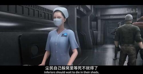 剧中虽然能见到多个纯种白人的角色,但纯正亚洲人却见不到几个,都被欧亚混血给直接替代,比如女指挥官镜南和那个小平头尘民是典型的亚洲混血人种面庞。白毛副手冉冰虽然是中国名字,但建模却是一个蓝眼睛的欧美白种女人,咋一看还以为是演星际穿越时期短发的安妮海瑟薇呢,说是中国人设定实在搞笑。