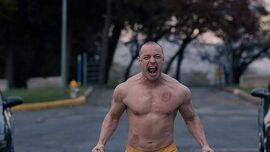 本片的前半段,其实观感还是不错的,从布鲁斯饰演的大卫与一美扮演的野兽短兵相接开始,一方面先用短篇幅再一次介绍了大卫的能力和他身为义警的职责(给没看过《不死劫》的观众一个大致的印象),另一面又延续了《分裂》的剧情,交代以野兽人格领导的精神分裂的凯文继续着自己降罪于纯洁之人的行为。