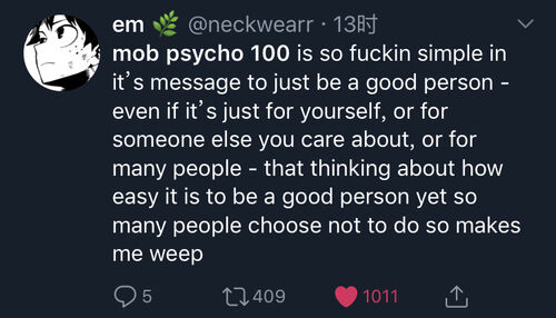 他的作品受到日本经典物哀美学的感染——《灵能百分百》几乎就是一部可视化的“物语”,主角茂夫的存在被无限淡化,人物的焦点因“哀”(审美情感)而不断变幻。