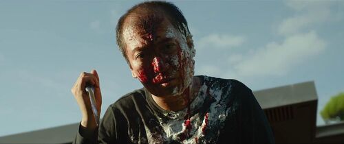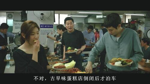 在片中,基宇一家有两次在靠窗的饭桌上吃东西的画面,都遇上了小便的醉汉。