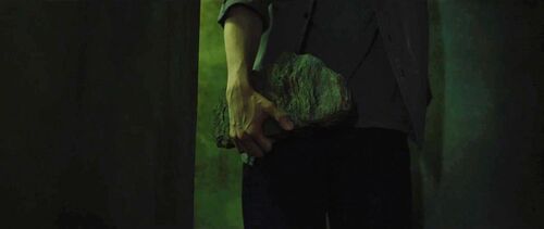 这块石头是假的名贵奇石(片中有个画面,基宇在被水淹没的家中,看着本该沉底的石头慢慢地浮出水面。这可能就是基宇脑袋被猛砸石头,却没死没傻的缘故),只是从地摊这种地方随便买来编个理由欺骗基宇,让他代替自己去当补习老师看着多惠的。