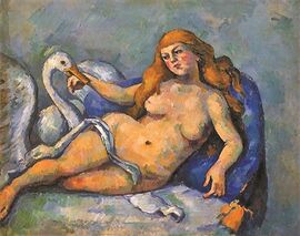 《丽达与天鹅》源于希腊神话,相传丽达是克里特王国的公主,嫁给了被驱逐流放于此的斯巴达国王延达瑞俄斯。婚后,她的夫君重返斯巴达,又成为了国王,而她只能独居于一个无人的小岛上。主神宙斯化形为天鹅,同斯巴达王廷达瑞俄斯之妻丽达结合,丽达产蛋,生下了绝世美女海伦和另一女儿克吕泰涅斯特拉。