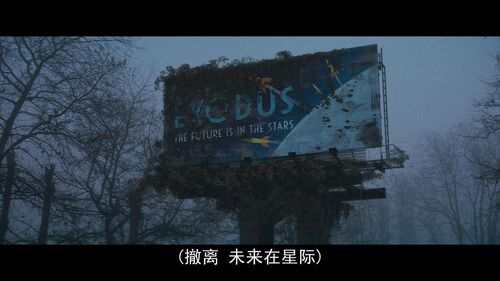 对此,影片中用星际邮件的形式陈述着故事的第二条线索,Sam的朋友Elon从IO殖民地上时不时地向她报告着人类在星系之中的生活与探索,他们为已经逃离了地球而庆幸,为Sam及其父亲滞留在地球而焦虑,为能够在外太空探索一颗新的地球而欣喜。这也正是与Sam及其父亲选择坚守在地球完全不同的重生路径:逃离并抛弃地球。正如那块广告牌中的文字所述:“Exodus-The future is in the stars.”