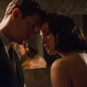 笑嘻嘻的看着这对恋人,走向自己的丈夫,一番寒暄问候, 以为两人也要拥吻,结果只是轻轻的抱了一下,亲下脸颊。多么聪明的细节啊,避免了爱人久别见面就拥吻的俗套剧情,又不失看点,没有让剧情变得平淡无味,一点点的小用心,让观众的好感爆棚。