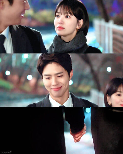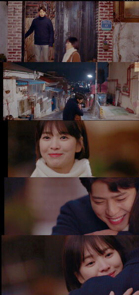 “游乐场消失的话如何是好呢”,秀贤站在独自在游乐场荡秋千的振赫身后笑着提问。这一幕正如几个月前,振赫和来此排解好奇心的秀贤归国后第一次的偶遇。如果说爱情是那时在彼此心中破土而出,那么此刻,爱情便是在彼此心中泼洒出关于未来绝美的图画!二人被泪水打湿的瞳孔,有种奇异的美,许是盛满爱的缘故吧。初雪中,深深地拥吻着的振赫和秀贤,幸福得好似童话中走出的可人儿。