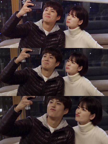 一直以来都觉得这部剧的花絮只是纪录片,今天导演放了大招,又是两人拍照时的鬼脸,又是跨年额头吻,要不是宋慧乔已有了宋仲基先生,否则我都要站这对桃子葡萄夫妇了~两位主演,힘내세요ㅋㅋㅋ하트❤