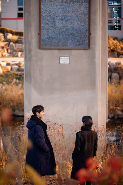 去过弘济洞特别美术馆,吃过平民餐馆分开的二人,夜晚再次在白天那幅画前不期而遇,一个是为逃避妈妈的责难而来,一个是为排遣内心的思念而来。有人说,这么多偶遇是不是太刻意,我认为不然,这就好似默契满分的人,正在思念对方时,对方捎来了信息,打来了电话,或者,去了同一个地方。
