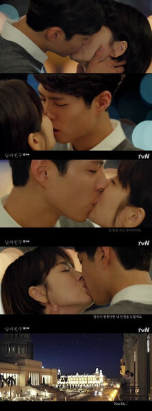 夜色如水,街灯闪耀,在他们初相遇的莫洛三世城堡上,振赫轻握秀贤的手,坚定又温暖,温柔的、略带占有欲的在秀贤的唇边印了一个吻,四目相对的瞬间,唇齿之间互相进犯,热烈而深情,缠绵而迷醉,仿佛一场火爆又艳丽的战争。