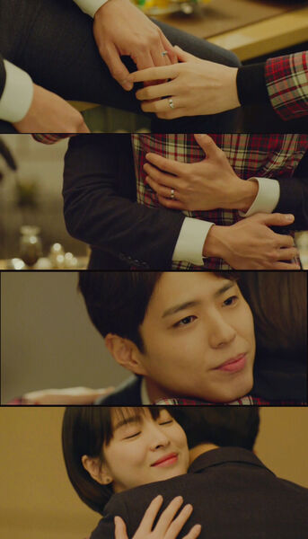 这集打动我有两个点,一是秀贤的醉中真谈,二是小两口林中交换情侣戒。秀贤的喝醉是这部戏第二个醉酒的情节,如果说振赫刚回国入职欢迎会的酒醉是激发二人感情的催化剂,那么秀贤的喝醉则是坚定二人感情的强心针。秀贤一边说着自己酒量可大呢,一边却慢慢进入话痨模式。一边真情告白有振赫在身边我真的每一天都特别开心,一边却又暗自神伤好怕这一切都好像一场梦,因为太美好,因为太幸福,完美到不真实。振赫默默注视着,倾听着,心疼着,自称自己也是很可爱可别人却不知道的秀贤,却从小就必须学会忍受孤独,受伤也只能独自舔舐伤口,即便生活的枷锁将她压的只剩喘息之力,她还必须困兽犹斗。振赫唯一能为她做的,就是给她承诺,告诉她这些美好不是黄粱一梦,而是以后天天都会有的好日子。于是便有了动人的第二幕,林中漫步之时,二人互相交换了对戒。冬日暖阳下,有你也有我,振赫说,我啊,心里满满都是你,所以,我才不会像你其他的朋友一样消失,我会一直守护你!眼里极尽宠溺,尤其是气声的那句“我们拍个纪念照吧”,温柔到哭泣,已经分不清是慧乔和宝剑的演技动人,还是秀贤和振赫的爱情动人。也许两者都有吧!