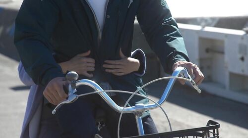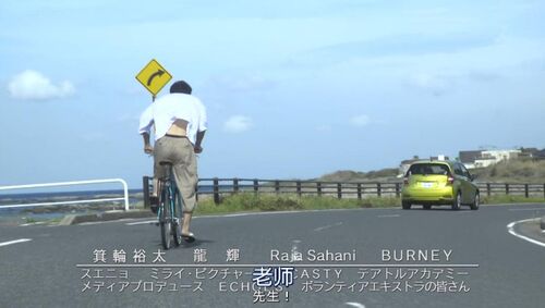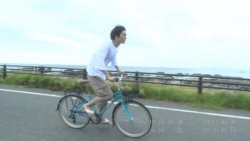 弟弟骑着自行车,拼命追赶车里的老师,上衣随风鼓起,可以看到背部的肌肤。同时执着地喊着“老师”的少年,与车里衣着整洁、故作淡定的两个大人形成鲜明的对比。反复看,才发现,这是极具杀伤力的少年感啊!