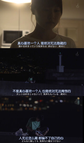 第二点:这次晶给圣留的纸条,让我想起了第二集的头巾。但是有一点不一样,第七集拍了晶留下纸条的一幕,而第二集并没有出现晶把头巾挂车头的镜头,观众并没有事先知道晶给圣留了东西,所以当车头的头巾映入眼帘时,观众可以与圣产生感情上的共鸣,惊讶与悸动,情感的余韵也更绵长。