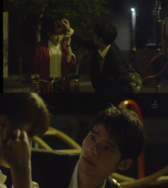 扇巴掌这样的暴力行为,真的很不好,长得好看也不行。编剧把后面两次删掉了,应该也是这么想的吧,那为什么要保留第一次呢?当看到第六集时,我好像明白了。班上那个小女孩拍了圣一掌(打蚊子),让圣不由得想起了晶。被迫分开后,3年了,总要有个契机让观众知道她会想起他,那个在她心里留下很深痕迹的男孩。