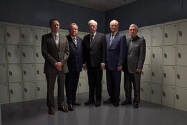 这是一部基于真实故事改编的电影。2015年的复活节,一帮盗贼假装成煤气检修工潜入伦敦哈顿公园区的保险库,钻了三个大洞爬进去偷走了超过一千四百万英镑的珠宝。这个窃案出名之处不仅在于它是英国史上最大额的窃案,重点是这一群盗贼几乎都超过了60岁,年龄最大的77岁。也就是一群真·老头子。